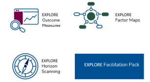 - A facilitation package contains guides and templates to support hands-on Explore workshops (held either in-person or online). During these sessions, user groups engage with plausible future scenarios, designing and testing potential interventions and plans.